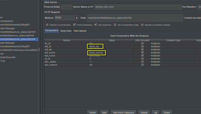 변수를 넣어야 하는 스레드를 찾아가서 Value를 ${변수이름} 으로 넣어준다