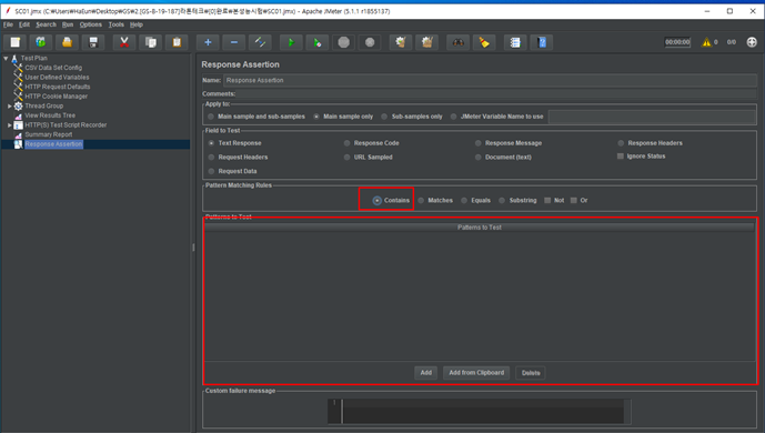 Add>Assertion>Respone Assertion 추가